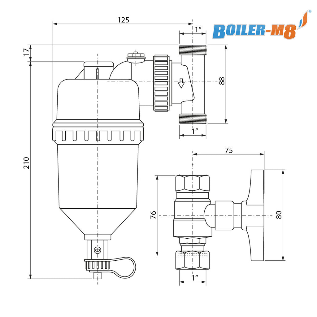Ensure your central heating system stays efficient, clean and trouble-free with the Boiler-M8 Defender-2 28 mm Magnetic Filter + Valves. This professional-grade filter is designed for use on 28 mm pipework, providing powerful defence against debris, magnetite and system build-up.